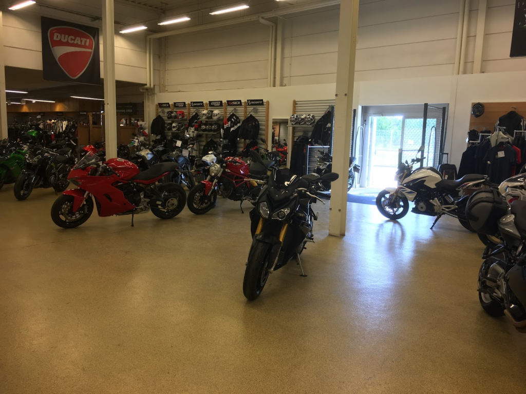 Vi är auktoriserade återförsäljare av märkena BMW, Ducati, Kawasaki och Can-Am. Butiken lagerför reservdelar även till äldre motorcyklar och har egen verkstad där vi servar de flesta märken. Tillbehörsbutiken är välfylld med nyheter inför varje säsong.