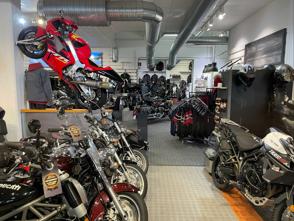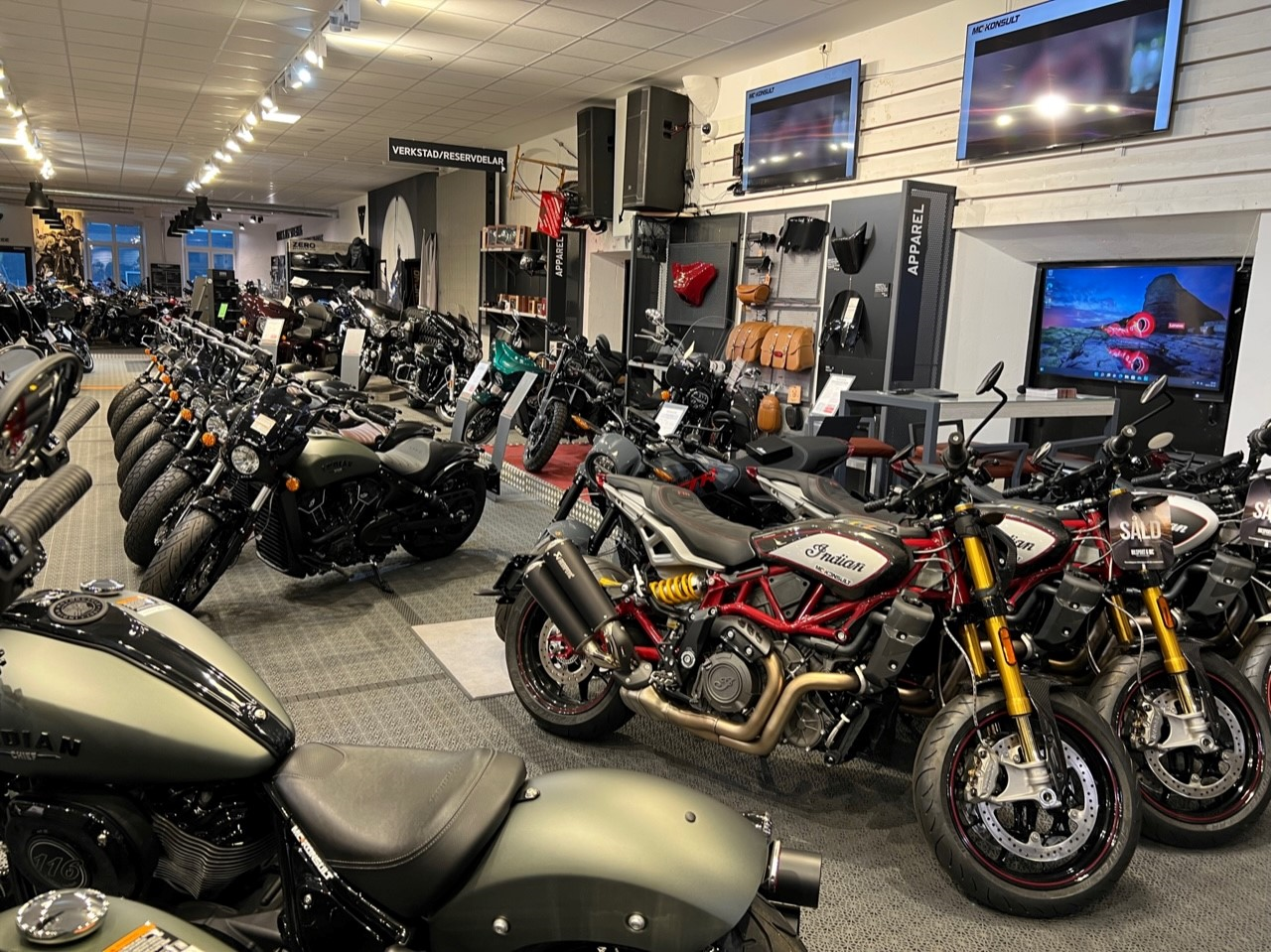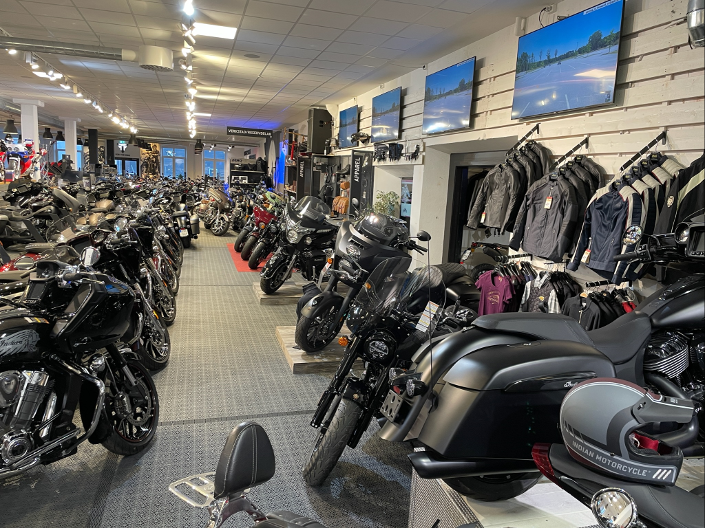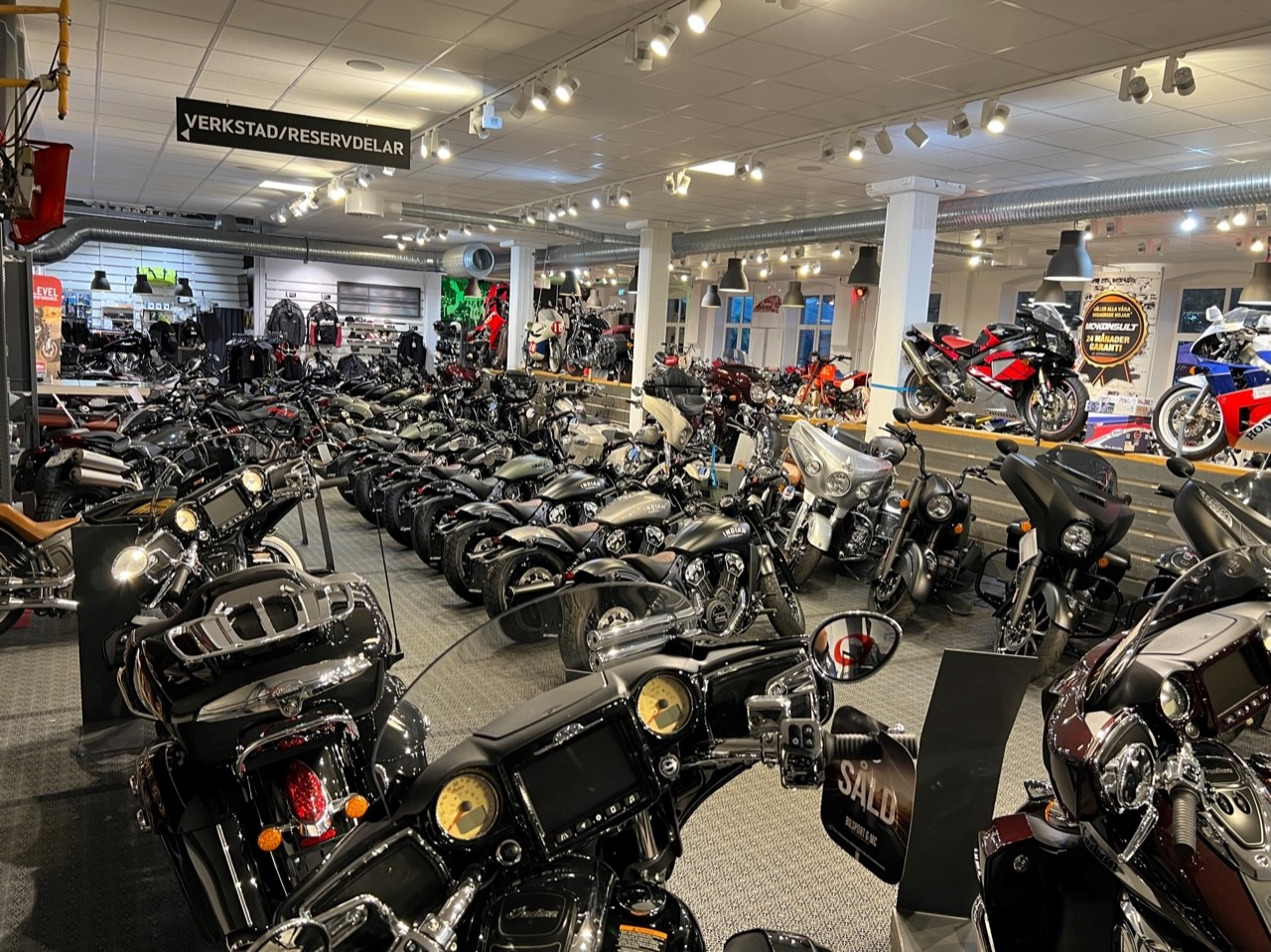 Vi är auktoriserade återförsäljare för Triumph, Indian Motorcycles, Honda, Zero el-hojar, Boss Hoss, mm. Vår specialitet har historiskt varit Harley-Davidson & customhojar, numera finns det en bred variation, allt från liten smidig offroad till största bussen.