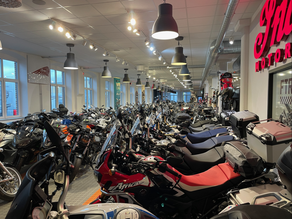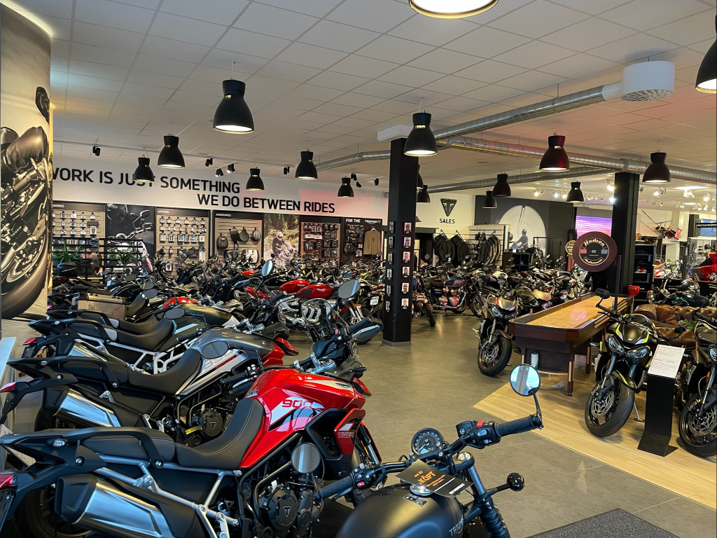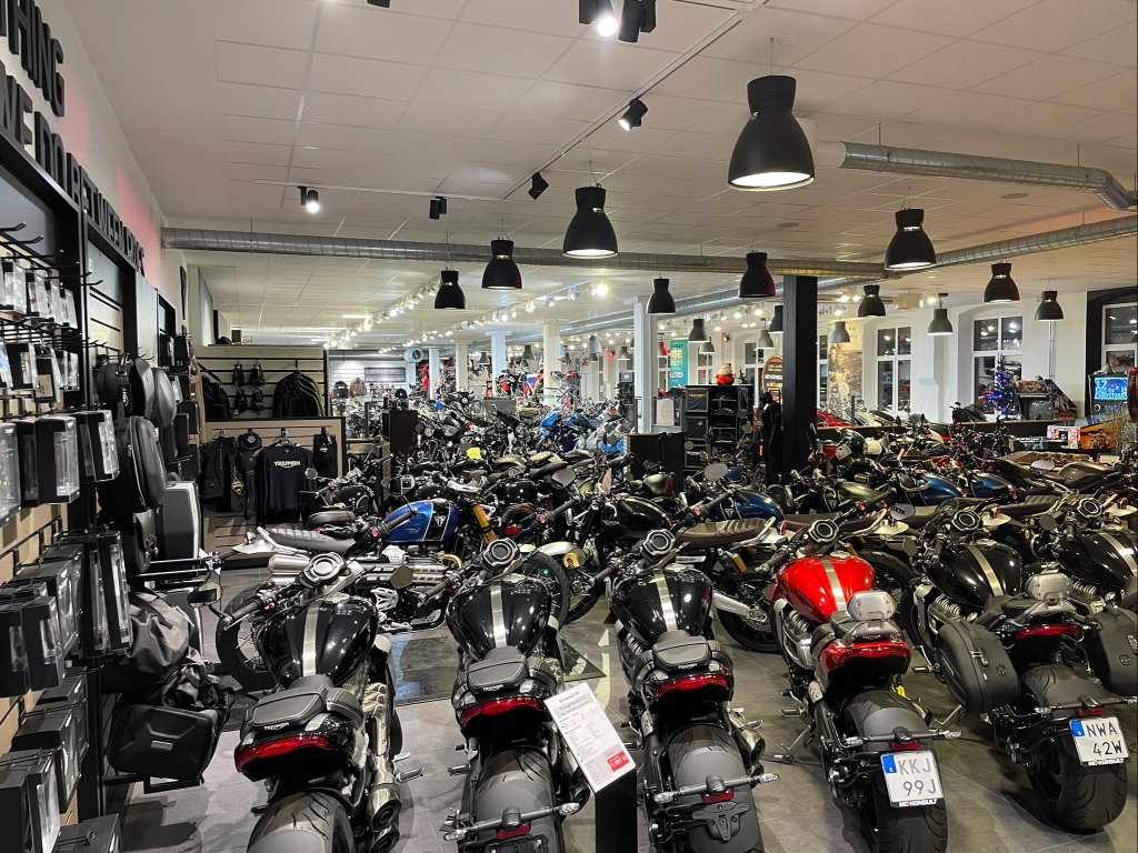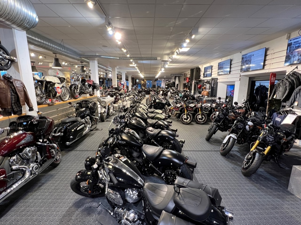 Vi är auktoriserade återförsäljare för Triumph, Indian Motorcycles, Honda, Zero el-hojar, Boss Hoss, mm. Vår specialitet har historiskt varit Harley-Davidson & customhojar, numera finns det en bred variation, allt från liten smidig offroad till största bussen.