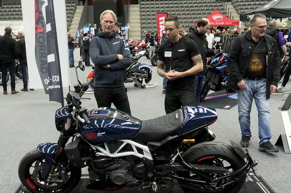 Jag träffade Andreas som precis före de skulle åka till mässan fick en leverans av denna riktigt häftiga och otroligt påkostade hoj. Det sägs kunna bli ett 10-tal lyckliga hojåkare som får lägga händerna på denna fullsmetade hoj med premiumtillbehör på. Jag blir så imponerad när han berättar vad som finns på denna monstermaskin.