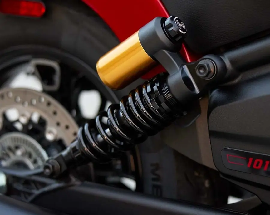 Med justerbar piggyback-stötdämpare bak, inverterad justerbar framgaffel och en dubbla bromsskivor och ok från Brembo, är 101 Scout packad med förstklassiga komponenter!
