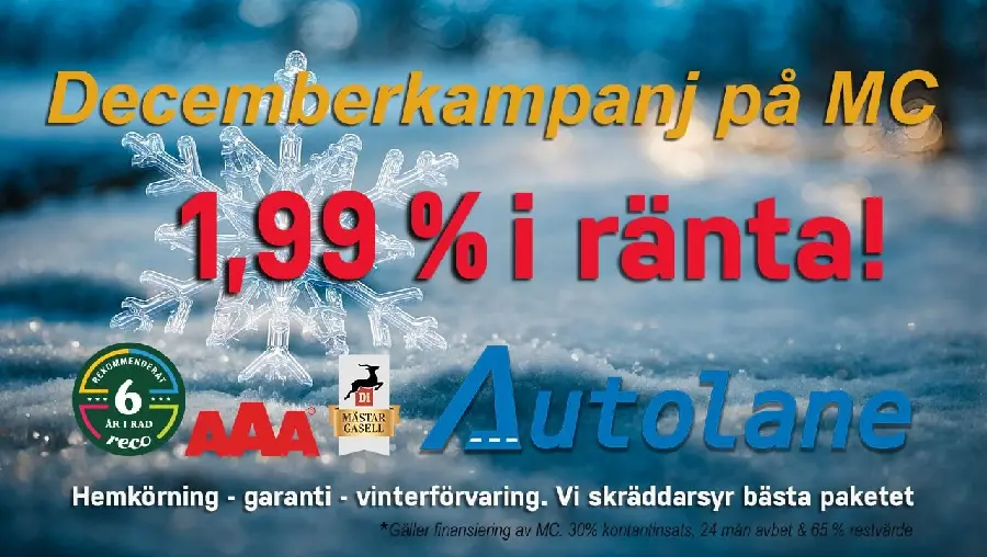 Vi ERBJUDER även VIDEOSAMTAL så att du kan se fordonet LIVE i mer detalj. Hör av dig för mer info samt eventuellt leveransdatum hem till dig. Finansiering löser vi... snabbt, smidigt och enkelt då vi samarbetar med de flesta förekommande banker på marknaden. Vi kan erbjuda garantier på ditt fordon upp till 30 månader! VI TAR BÅDE BIL OCH MC SOM INBYTE. Alla våra fordon har genomgått ett noggrant kvalitetstest i vår fullserviceanläggning. Transport från 3000kr. En administrationsavgift på 1495:- tillkommer på alla våra fordon. All info och fler bilder ser du på https://www.autolane.se eller kolla upp oss på Facebook och se vad våra kunder tycker om oss. Varmt välkomna! Autolane, AK