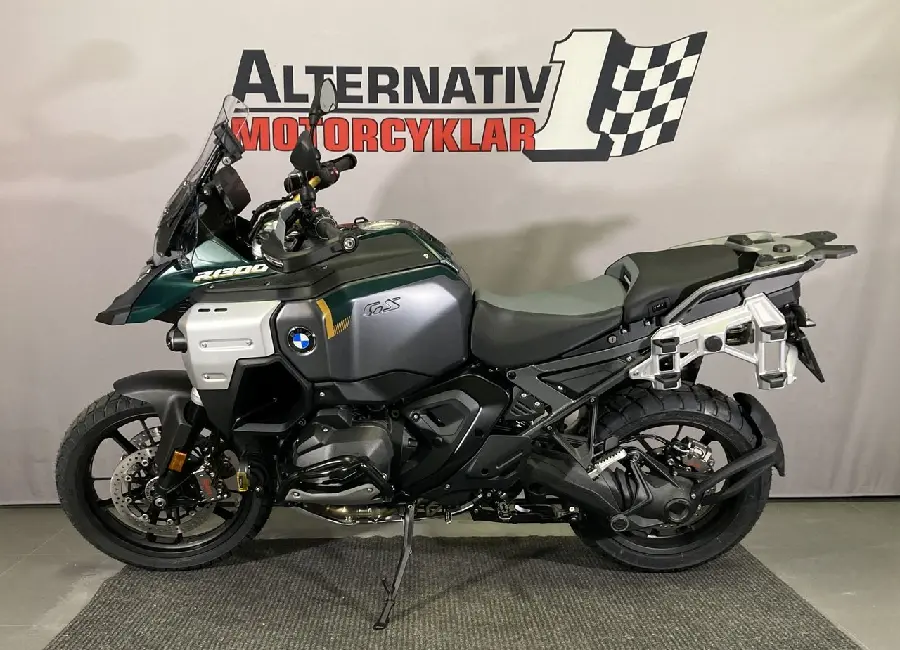 BMW R1300GS Adventure från 2025 i färgen Karakorum Aurelius Green (option 719). Nya R1300GSA är äntligen här - en helt ny hoj jämfört med gamla 1250 GSA. Denna cykeln är utrustad med nya växelllådan (automat). Utrustad från fabrik med : TFT skärm. IEC. M-batteri. Innovationspaketet (Riding assistant. Bakre kollisionsvarning. Hedlight Pro. ) Option 719 (Komfort säte fram och bak. Option 719 billet shadow pack. Karakorum Aurelius Green) + Touringpaketet (Elektriskt justerbra ruta. Väskfästen. GPS förberedelse. Centralstöd ) + Dynamikpaketet (Riding modes Pro. Sport brakes. Shift assistant Pro. ).... Forged Enduro Wheels. Adaptive Vehicle control. Pakethållare. Automat. Utöver fabriksutrustningen är denna cykeln även utrustad med : Akrapovic helsystem. Dinali extraljus. Priset i annonsen avser cykeln med fabriksutrustningen d.v.s ej Akra och Dinali. Detta är en demohoj och finns för provkörning i butiken. #BMW #R1300 #R 1300 #1300GSA #1300 GSA #R1300GSA #R 1300 GSA #Adventure #Äventyrshoj #Kardan #Boxer #DKG98E #DKG #98E