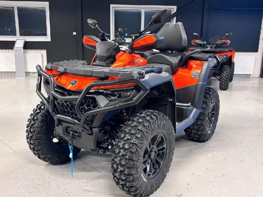 CFMoto 1000 har 3 års fabriksgaranti och marknadsledande komfort och kraft. Utrustad med handtagsvärme - Tre Power Modes - Turf på både fram och bakaxel - Vinsch - Dragkrok med släpvagnskontakt -Led lysen - Ställbara stötdämpare - Handtagsskydd - Down hill assist.