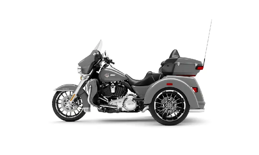 Upptäck Harley-Davidson Tri Glide Ultra – en imponerande trehjuling med kraftfull design och toppmoderna funktioner. Den svarta finishen på fälgarna och drivlinan ger ett aggressivt uttryck, medan den kraftfulla Milwaukee-Eight® 114-motorn och premiumfjädringen garanterar både komfort och säkerhet på vägen. Med en elektrisk backväxel, pekskärm för navigering och ljudsystem med fyra högtalare, är varje resa både lätt och underhållande. King Tour-Pak bagageboxen erbjuder gott om plats för dina tillhörigheter, och justerbara fjädringar ger en smidig körning oavsett last. Tri Glide Ultra – för dig som vill ha både stil och prestanda.