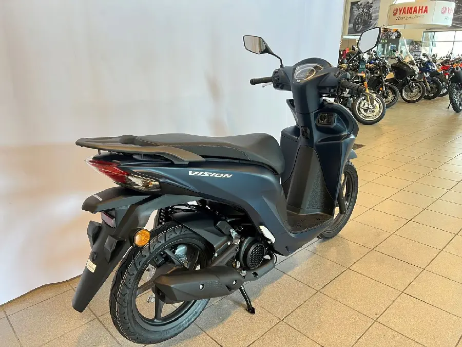 Vision 110 är en smidig vardagsskoter och långkörare i Hondas modellutbud. Den prisvärda kvalitetsmaskinen är både bekväm och praktisk, med lågt insteg och slät fotplatta, analog/digital instrumentpanel och smartnyckelsystem. Ramen är senaste generationens eSAF-konstruktion (enhanced Smart Architecture Frame) och en bränslesnål eSP-motor (enhanced Smart Power) med tomgångsstopp står för drivkraften.
