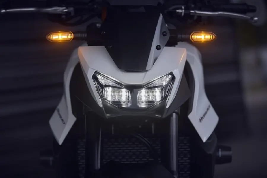 Dubbla radialmonterade fyrkolvsok fram ger kraftfull och exakt bromsverkan. Blinkersen är självavstängande och utrustade med nödbromsvarning för ökad säkerhet.