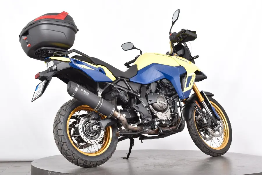 Upptäck friheten med Suzuki V-Strom 800 DE! Med en kraftfull 776cc parallelltwin, avancerad fjädring och offroad-fokuserad design tar den dig längre, oavsett väg. Smidig, robust och full av äventyr – perfekt för den som vill utforska utan gränser. Kör ditt nästa äventyr idag!