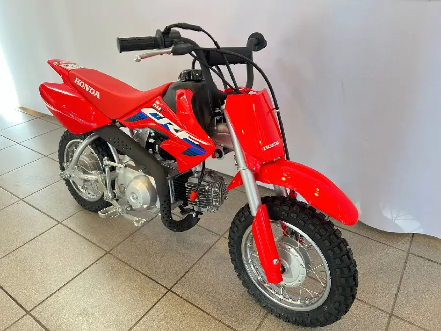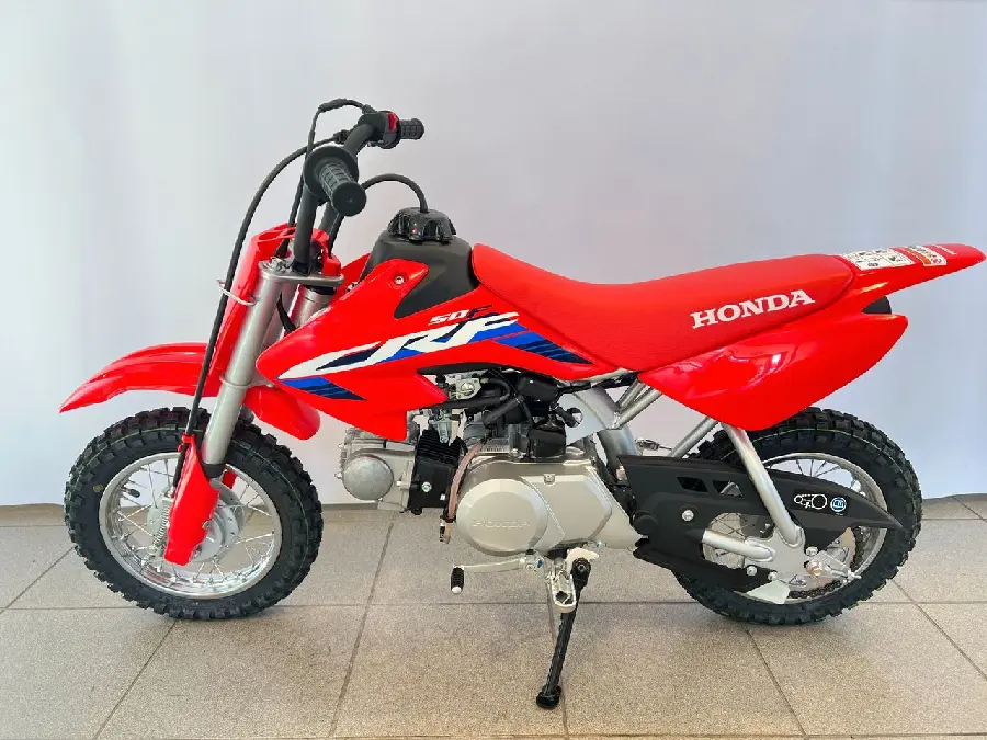 Honda CRF 50 F är den perfekta nybörjarhojen för barn som vill prova på motocross. Den lilla maskinen har en körglad och driftsäker luftkyld fyrtaktsmotor på 49 kubik med praktisk automatkoppling som underlättar att komma igång med körningen. Nybörjare brukar också känna sig trygga med de små 10-tumshjulen och den låga sadelhöjden. Till 2023 uppdateras CRF110F med färgsättning och dekaler från storasyskonen CRF250R och CRF450R.