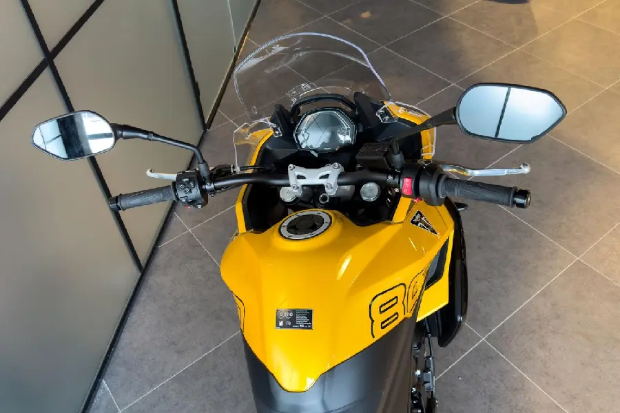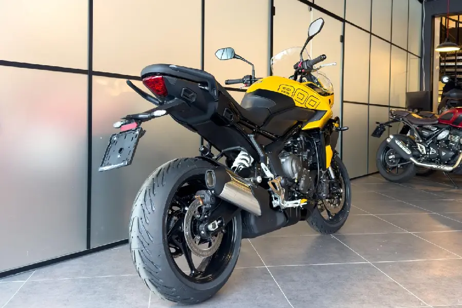 Den nya motorn sprungen ur Street Triples 765cc levererar 113hk och med kvalitetskomponenter från Showa och Brembo tror vi detta blir en kanonhoj att möta säsongen -25 på. Integrerade väskfästen finns tillgängliga för att montera väskor. Totalkapacitet uppgår till 106 liter!