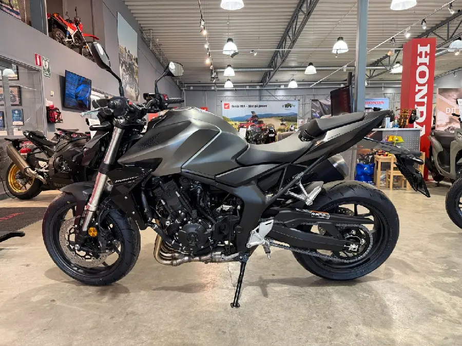 Honda släpper sin mest potenta Hornet hittills, en motorcykel med enorm prestanda. CB1000 Hornet laddas med en fyrcylindrig CBR1000RR Fireblade-motor, Throttle By Wire-kontroll, tre körlägen med förinställda kombinationer av inställningar för Power - Engine Braking - HSTC och Wheelie Control, plus två anpassningsbara alternativ. Med utväxlingar utformade för optimal acceleration, har den sexväxlade växellådan även en assisterande slirkoppling. 41 mm Showa SFF-BP USD-gafflar matchas av en Showa bakdämpare och Pro-Link, fyrkolvs radiellt monterade främre bromsok fungerar med 310 mm flytande skivor. Dubbla LED-projektorstrålkastare definierar den rena nakna aggressionen hos en streetfighters stil. Och för enkel navigering på skärmen av den fem tums TFT-displayen.