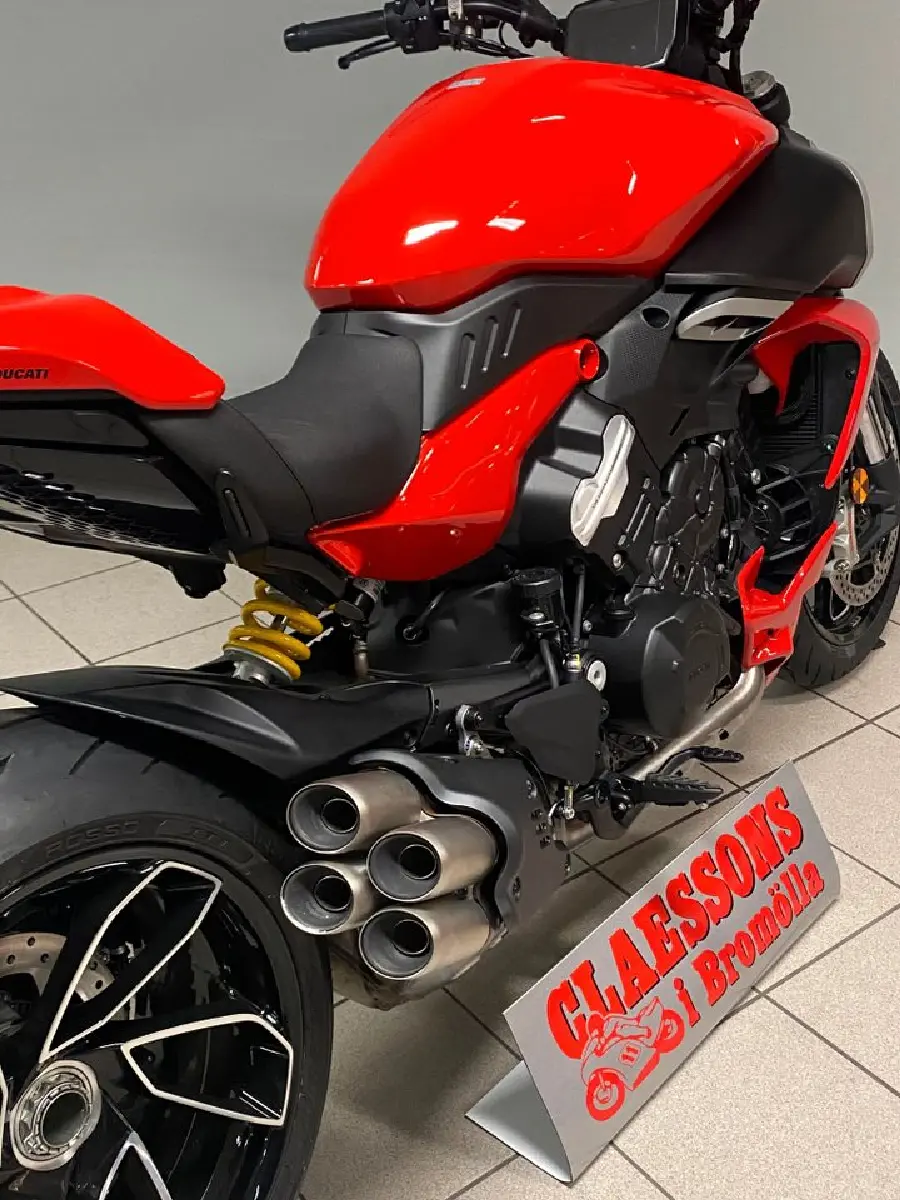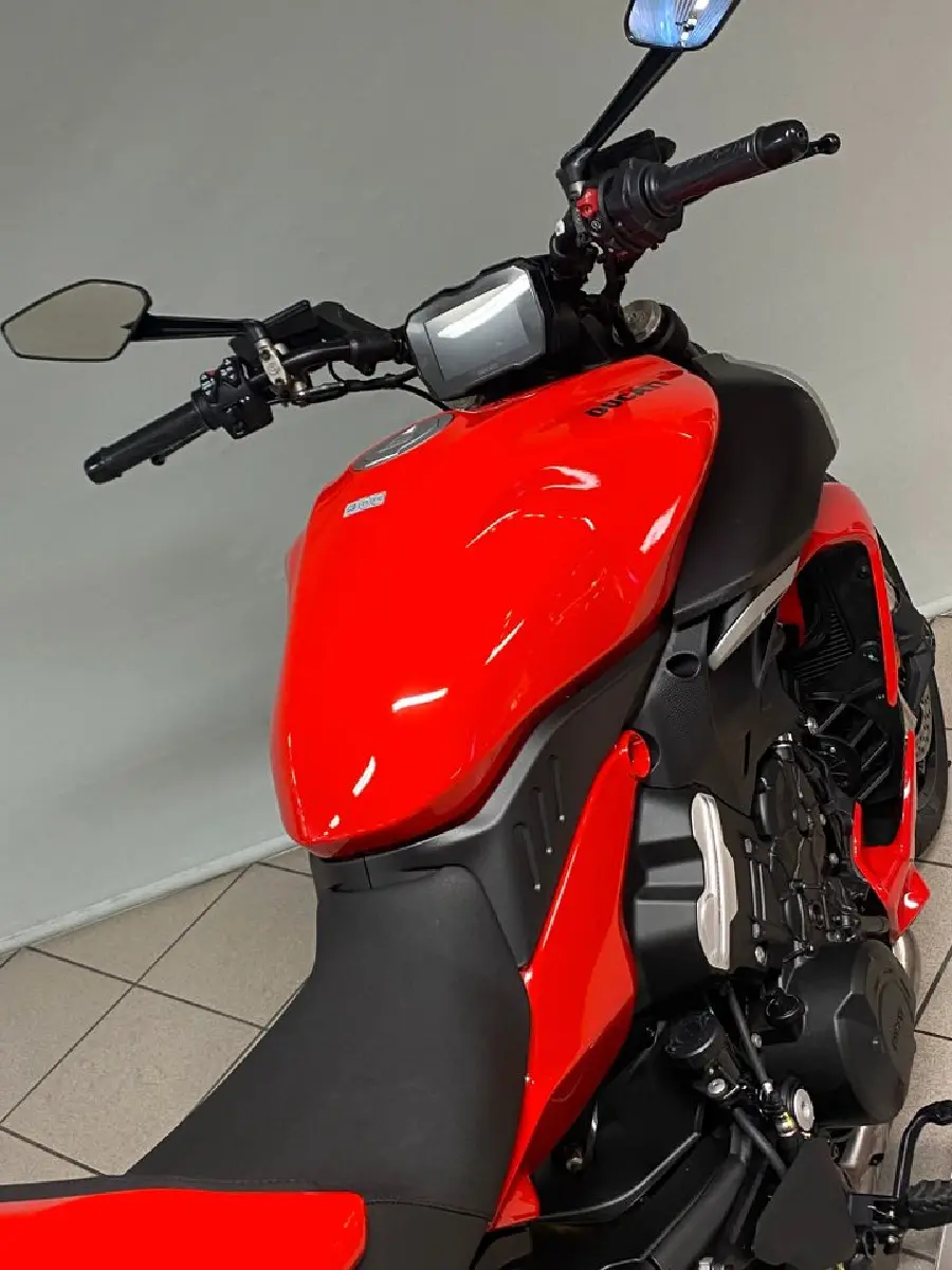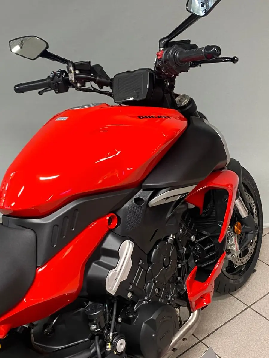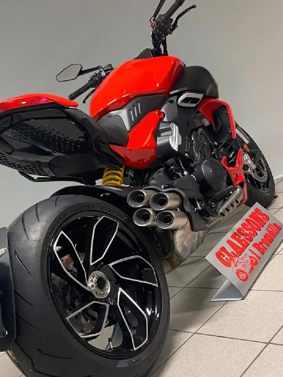 Muscular, gritty, with its broad "shoulders" and proudly visible four-exit exhaust, the Diavel V4 is designed to convey boldness and not go unnoticed. Starting with the new front and rear light cluster, to the retractable passenger footpegs and the retractable rear grab bar are the details that make the difference and make the design of this bike even more unique and unmistakable.