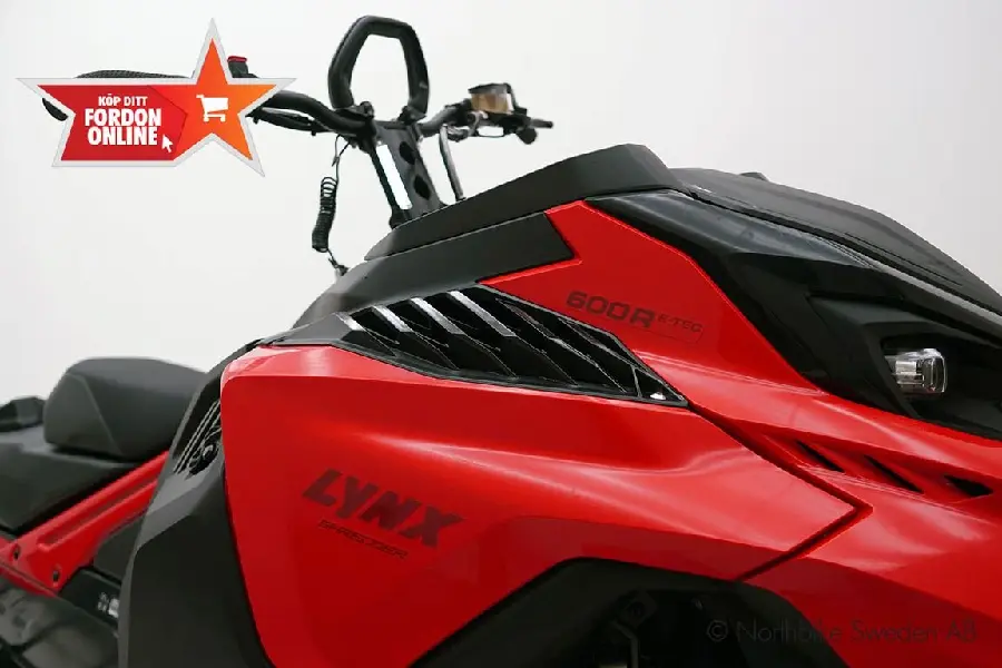 En fullvuxen snöskoter på Radien²-plattformen. Lynx Shredder-snöskotern reagerar enkelt och exakt på förarens rörelser, tillsammans med smal design och PPS2 DS+-boggifjädring. Den livliga körupplevelsen möjliggörs med en accelerationssnabb Rotax® 600R-motor.