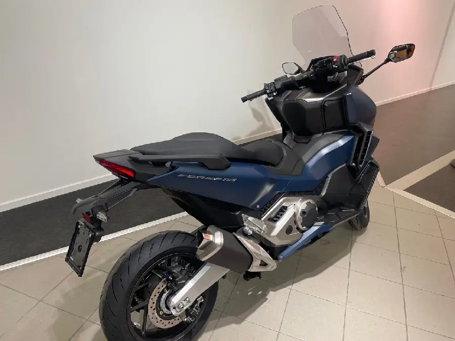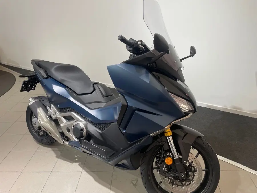 Forza 750 är toppmodellen i Hondas lyxiga skoterserie Forza och det perfekta stadsfordonet med både körglädje komfort och avancerad teknik. Motorn är en vridstark parallelltwin på 745 kubik med elektronisk gasreglering tre standardkörlägen och antispinn med tre nivåer. En robust stålrörsram utgör stommen i den stora skotern och hjulen är 17 tum fram och 15 tum bak för stabila köregenskaper. Bakfjädringen har en rejäl aluminiumsving med Pro-Link och den kraftfulla frambromsen har dubbla radialmonterade fyrkolvsok. Det stora förvaringsutrymmet under sadeln rymmer en integralhjälm och har även USB-uttag... för laddning. All belysning har LED-lampor.