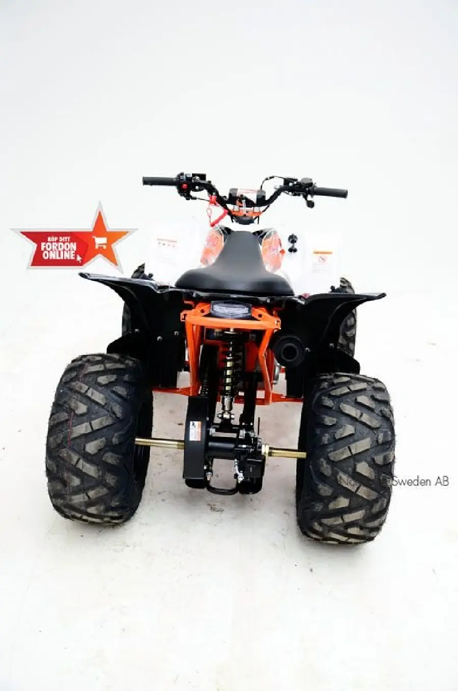 Undertill hittar du en beprövad 4-taktsmotor som ger grym kraft till den unga föraren (från 10 år). AT110 är även utrustad med back och elektrisk start! Riktigt bra fjädring och en stark och lättviktig... ram rundar av paketet.