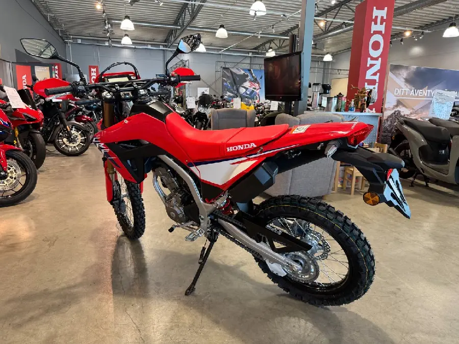 Hondas supersmidiga och kompakta offroadhoj CRF300L uppdateras med LED-belysning, nya fjädringsinställningar och nya fräscha färgalternativ inför 2025. Den pigga encylindriga motorn, som nu uppfyller avgaskraven EURO5+, svarar snabbt på gasen och den sexväxlade lådan är utrustad med slirkoppling. Tack vare en robust stålram med optimerad styvhetsbalans, hög markfrigång och 142 kg tjänstevikt är hojen lättkörd både på och utanför asfalten.