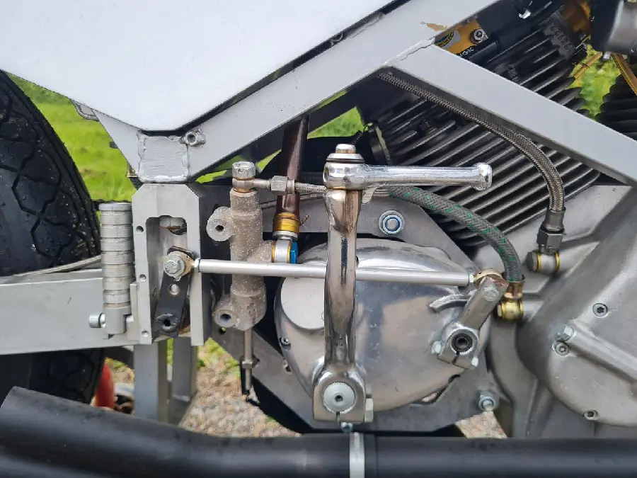 Acke Rising på ISR som byggt chassie, fjädring och bromsar samt Nisse Hedlund som stått för utveckling och produktion av denna mäktiga 1000cc V-twin.