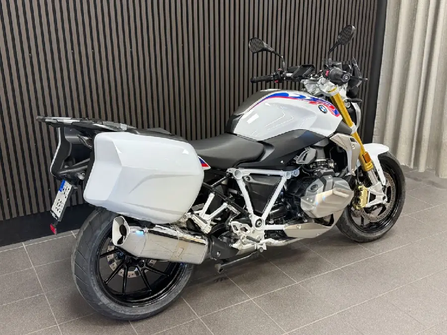 Utrustning: Style HP. Dynamic ESA. DTC. Keyless Ride. Daytime running lights. Gearshift assistant Pro. Driving modes Pro. Tankblende pure. Preparation navigation unit. Exhaust system chrome. Heated handlebar grips. RDC. Cruise control. Engine spoiler. LED turn indicator white. ABS pro. Alarm system. Centre stand. Luggage grid. Intelligent emergency call. Sidoväskor. Ruta. Hugger. Cylinderskydd. Bra att veta: Senaste service är gjord vid 3340 mil 2024-11-08. Besiktad till 2026-04-30. (R1250. R1250 R. R 1250 R)