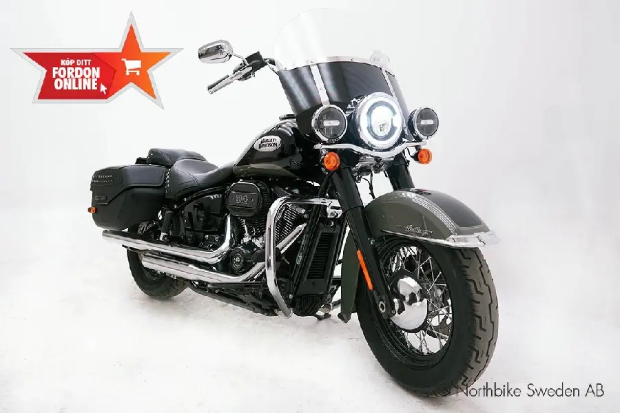 Milwaukee-Eight 114"-motorn och den komfortabla körställningen gör denna hoj till en fröjd att köra på både längre turer och kortare utflykter. Med klassiska Harley-detaljer och den ikoniska designen är den här Heritage Classic en motorcykel som både syns och känns.