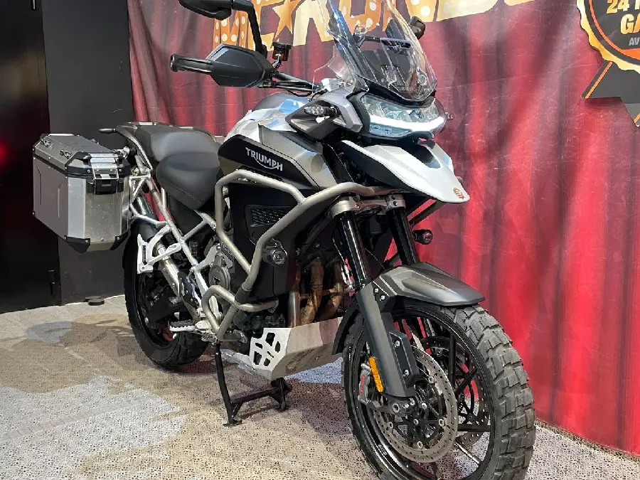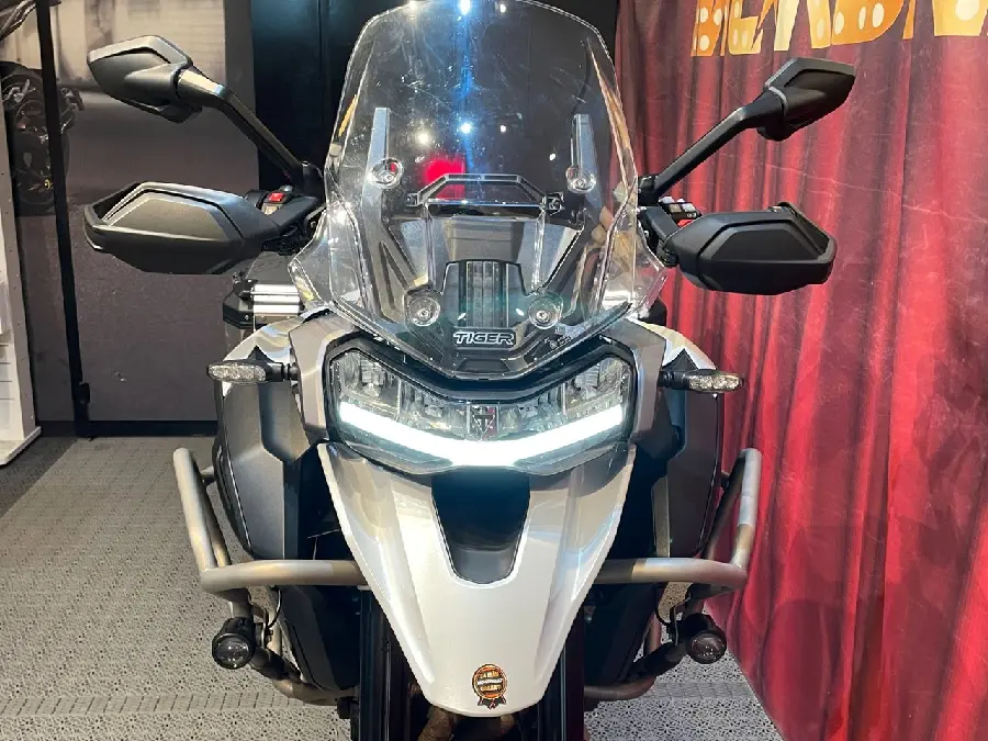 Lagertömningskampanj med från 2,95% ränta & fri vinterförvaring! Tiger 1200 GT Explorer. 30 liter bränsletank, Blindspot Radar, Värmehandtag, Värmedynor, Aluminium sidoväskor, Farthållare, Bluetooth, Riding Modes, Kurv ABS, Traction Control, Motorbågar, Övre skyddsbågar, med mera. En ägare, Full historik. Service och montering av nya däck gjordes 2025-09-23.