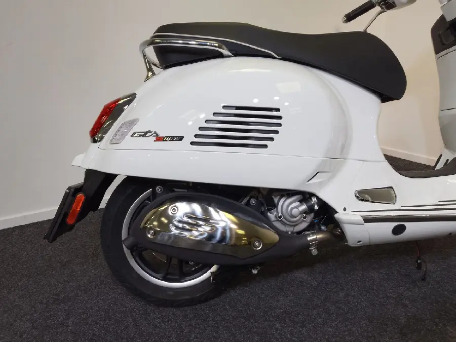 En ny läcker Piaggio Vespa GTS 300 i vacker vit lack. Den perfekta hojen att transportera dig till jobb eller till stranden med både komfort och stil. Med nyckelfri tändning, väskkrok, bagageutrymme under sätet och USB uttag är du redo att dra ut på alla sommarens äventyr.