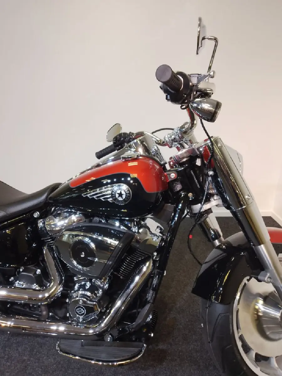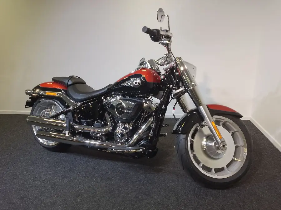 En ny unik två-färgad Harley Davidson Fat Boy i den djärva Whiskey Fire/Vivid Black lacken. Den nya Milwaukee-Eight 117 motorn levererar en kraftfull körning samtidigt som de tjocka däcken bidrar till ett kraftfullt och stabilt intryck. Fat Bob 2025 har kvar den klassiska formen med uppdaterad teknologi för att ger mer komfort och säkerhet. En hoj du måste se och höra!