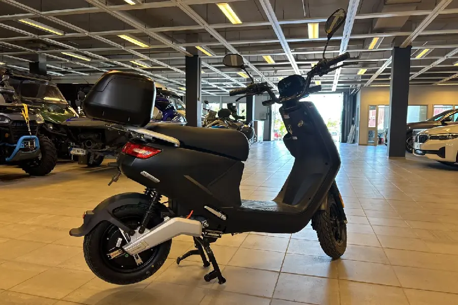 En riktigt kompakt och modern Mopedklass 1 45km/h elmoped. LED-strålkastare i fram med en egen signatur och stöldlarm. Den drivs av en 1440 W motor från marknadsledande Bosch. Batteri med en räckvidd på ca 50km går att plocka med sig för laddning eller ladda när det sitter kvar i mopeden. Som alla mopeder från LV finns plats för ett extra batteri som på denna modell ger dig en räckvidd på upp till 100 km (med 2 batterier). Maxfart: 45 km/timmen, Längd: 1700 mm, Bredd: 700 mm, Höjd: 1350 mm (1050 mm utan backspeglar), Sitthöjd: 780 mm, vikt: ca 67 kg med ett batteri, Däck: 10", Batteri: 48V 26Ah,... 3 års garanti (Även på batteriet), Effekt: 1440 W. Vi erbjuder finansiering genom Santander, Månadskostnad: 185:- med 20% kontantinsats, Vi tar de flesta fordon i inbyte, Vi kan även göra ett rent inköp om du endast vill sälja ditt fordon, Kontakta oss för mer information, Ring oss på 0702836416, Mail fordon@sama.nu, Välkommen!
