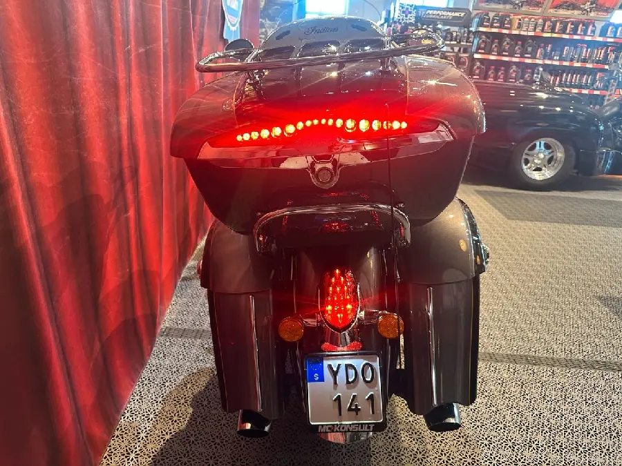 Vacker Indian Roadmaster med otroligt få mil på mätaren. Thunderstroke V-twin motorn levererar kraft och det rätta mullret och extrautrustad med highway-pegs, armstöd och mugghållare. Levereras nyservad & nybesiktigad för bekymmersfri körning!