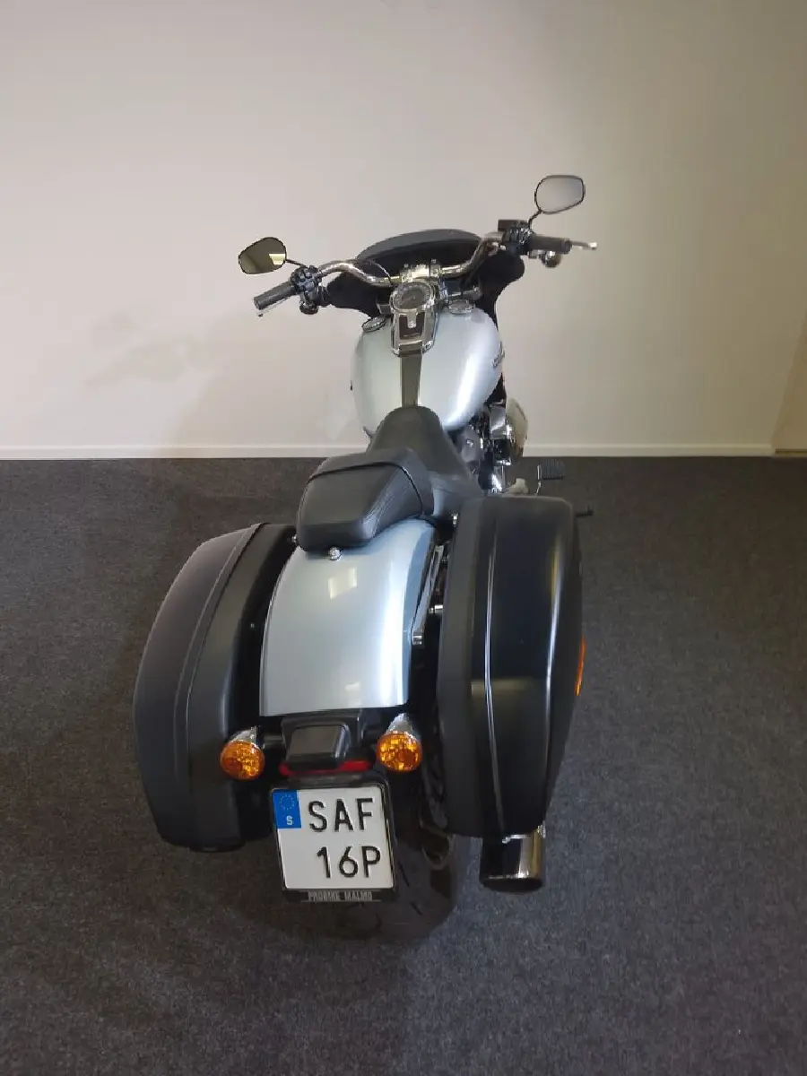 Harley-Davidson Sport Glide 2019 i elegant silver - en mångsidig customtourer med Milwaukee-Eight 107-motor och avtagbara väskor. Sportig känsla med touringkomfort gör den perfekt för både stad och långtur. Välvårdad, servad och redo för nya äventyr!