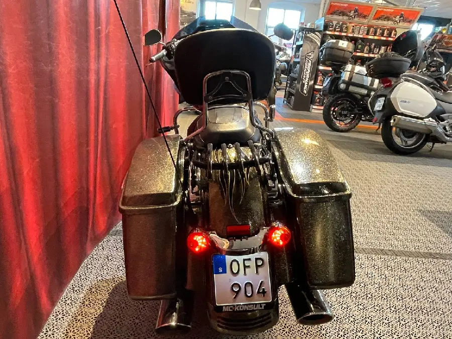 En riktig blickfångarhoj! Välutrustad touringmaskin med den rätta looken, avancerad elektronik och premiumljud!... Vill du ha grym komfort utan att tumma på HD-karaktären är detta maskinen för dig. Utrustad med Screaming Eagle super tuner, luftfilter & slip-ons för att både låta och gå bättre. Dessutom siisybar och pakethållare så man kan packa med sig både passagerare och bagage.