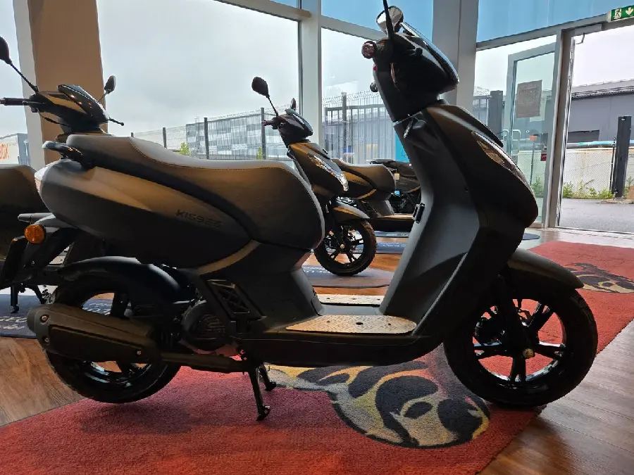 Peugeot Kisbee har mycket goda förvaringsmöjligheter, ett plant golv och med fotplattor i aluminium. Sadelhöjden är 770 mm och har en upprätt körställning som ger dig en stabil och säker körställning med mycket god överblick av dina medtrafikanter. 12 tums aluminiumfälgar och en analog instrumentering. Vikt: 97kg, Automat steglös växellåda. Tank: 6.3 liter.