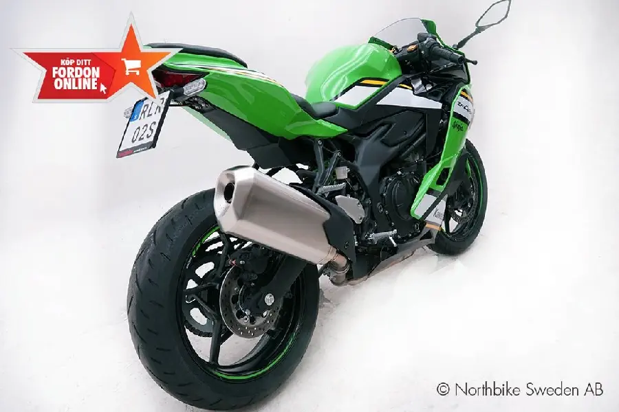 Nu har du chansen att lägga vantarna på en nästan ny Kawasaki ZX-4RR, en av marknadens mest eftertraktade sporthojar i mellanviktsklassen – till ett riktigt kanonpris!