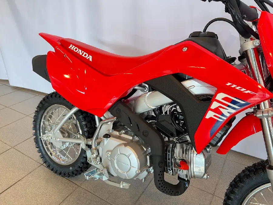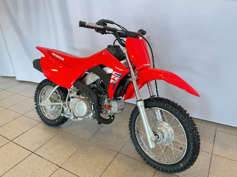 CRF110F är med sin beprövade hållbarhet och nybörjarvänliga prestanda ett perfekt exempel på Hondas långa historia av fyrtakts knattecrossar, som går nästan 40 år tillbaka till den legendariska XR75. Nuförtiden har dock modellen modern teknik som Keihin bränsleinsprutning, 4-växlar med automatkoppling och elstart. Till 2023 uppdaterades CRF110F med färgsättning och dekaler från storasyskonen CRF250R och CRF450R.