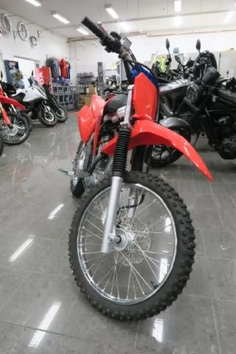 CRF125F är visserligen en mellanmodell i Hondas stora offroadutbud, men den är långt ifrån bortglömd. Den populära maskinen är konstruerad för bekymmersfri körglädje för ungdomar och mindre vuxna. Kraften är lätthanterlig och användbar tack vare bränsleinsprutning. Den robusta dubbelrörsramen av stål klarar tuffa tag i terrängen. Lång fjädringsväg sväljer ojämneter effektivt och gör körningen bekväm. Med elstart och fyrväxlad växellåda får man samma känsla av kontroll som på en fullvuxen crosshoj. Storleksmässigt placerar sig CRF125F i mitten av Hondas offroadutbud, men när det gäller körglädje... är den på topp.
