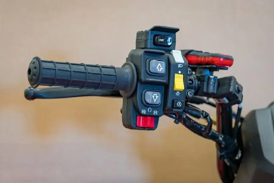 Backen är nu el-styrd så med hjälp av den röda knappen på vänster styrhandtag är det enkelt att trycka in och ”växla ner”, så går backen i.