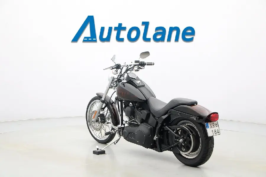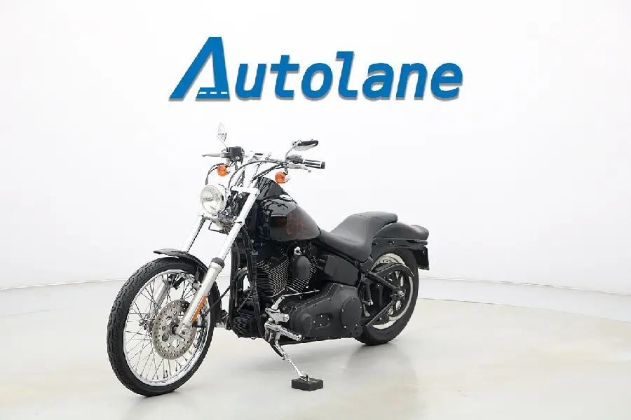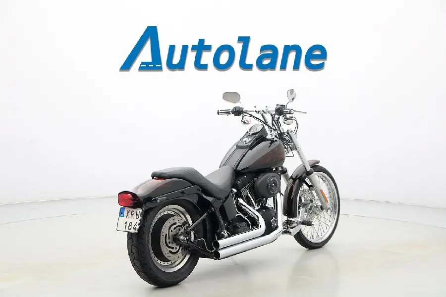 Rå Twin Cam 88, manuell växellåda och motivlack med flames. Låg, elak och full av attityd. Grymt ljud, tung gång – en hoj som syns och hörs.