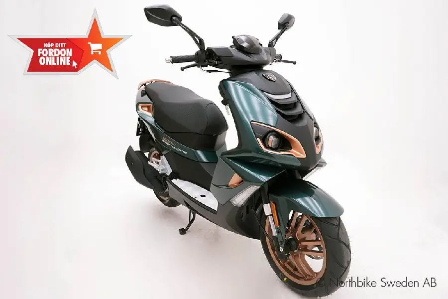 Peugeot Speedfight Sportline har en clean strömlinjeformad design som ger massor av attityd med dess starka karaktär och oklanderliga finish. Den här modellen är för dig som vill sticka ut på ditt eget unika sätt. Peugeot Speedfight har dubbla konvexa strålkastare och LED-belysning fram. Den har 13 tums hjul med svartlackerade fälgar, fotplattor och infällbara skjutspinnar i aluminium och styrvikter i rostfritt stål. Med en radialmonterad skivbroms och wave-skiva fram får du säkra bromsegenskaper. För extra grymma väg- och köregenskaper finns sportljuddämpare, sportbackspeglar och gasdämpad bakfjädring.