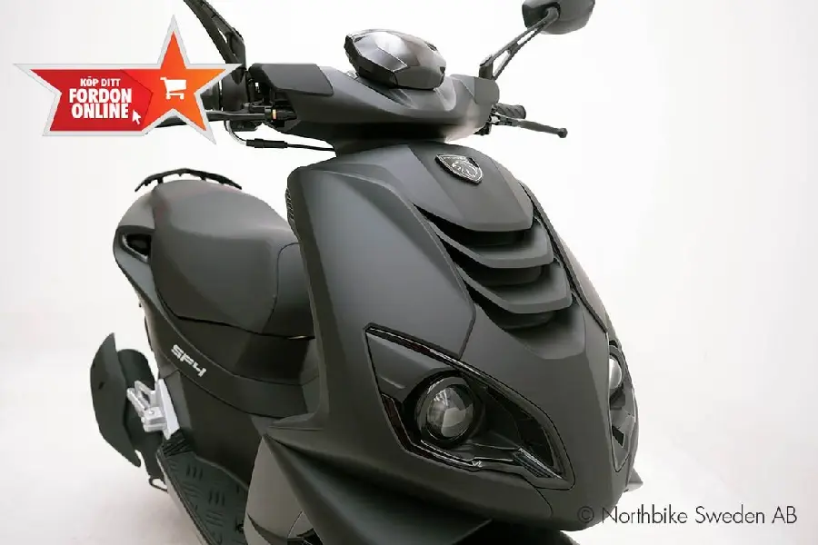 Peugeot Speedfight har en clean strömlinjeformad design som ger massor av attityd med dess starka karaktär och oklanderliga finish. Den här modellen är för dig som vill sticka ut på ditt eget unika sätt. Peugeot Speedfight har dubbla konvexa strålkastare och LED-belysning fram. Den har 13 tums hjul med svartlackerade fälgar och infällbara skjutspinnar i aluminium och styrvikter i rostfritt stål. Med en radialmonterad skivbroms och wave-skiva fram får du säkra bromsegenskaper. För extra grymma väg- och köregenskaper finns sportljuddämpare, sportbackspeglar och gasdämpad bakfjädring.