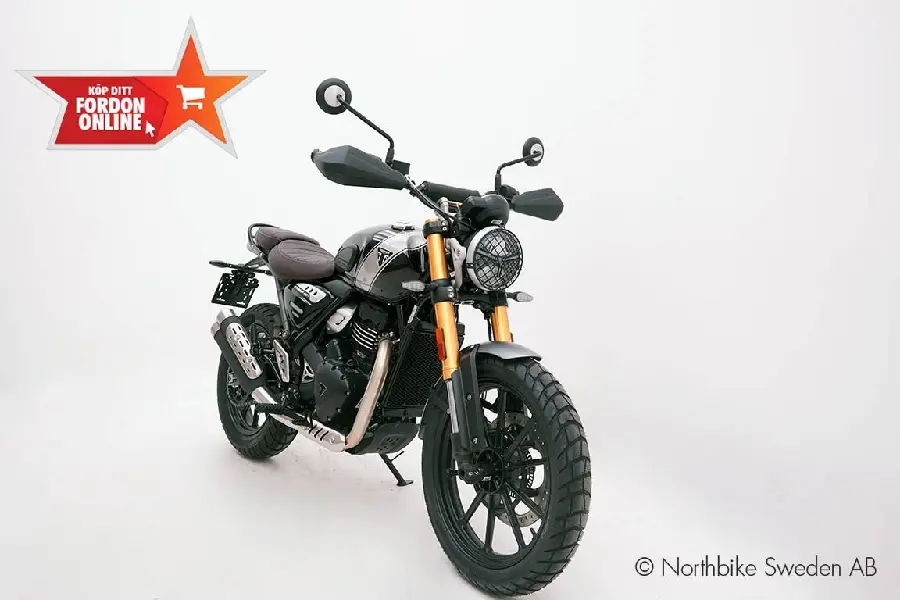 En Speed 400 och en Scrambler modell. Otroligt prisvärda motorcyklar som ej kompromissar på kvalité eller stil trots sin mindre motor.