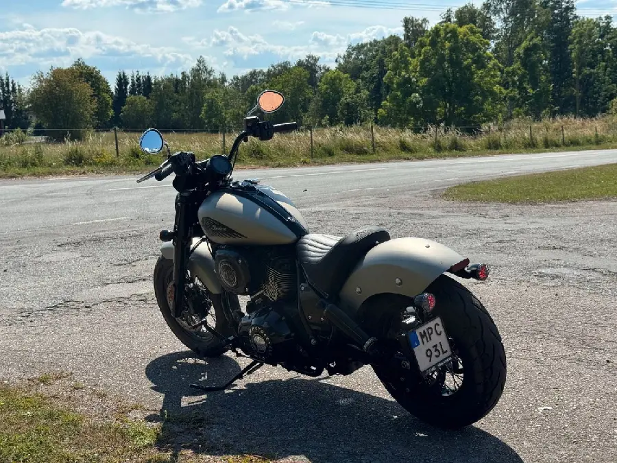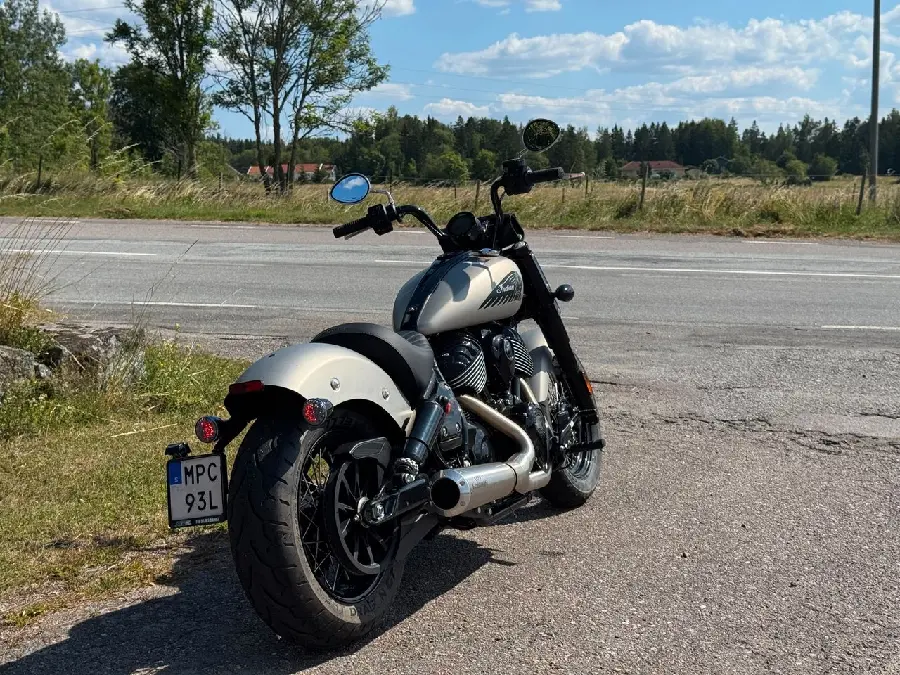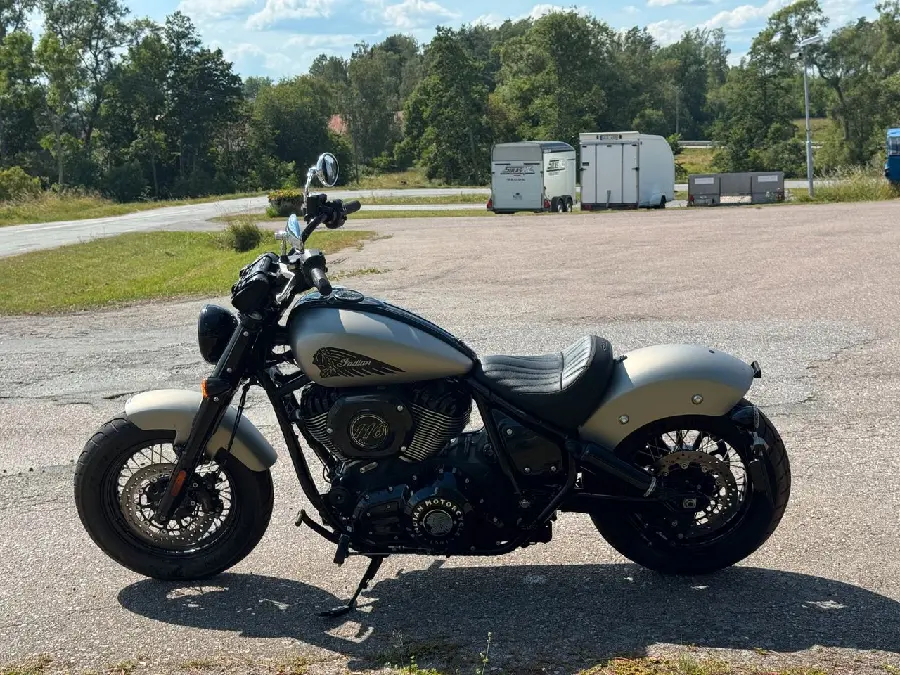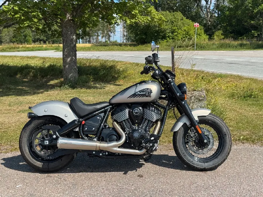 Säljer en nästintill ny Indian Chief Bobber i snygg silverfärg, årsmodell 2022, med endast 275 mil på mätaren. En rå och stilren maskin för dig som vill ha både attityd och modern teknik i en klassisk förpackning.