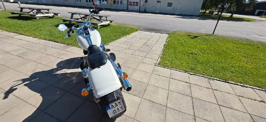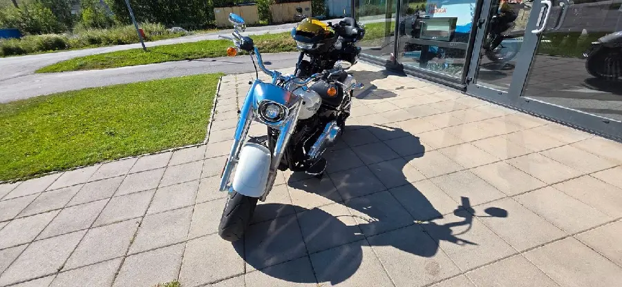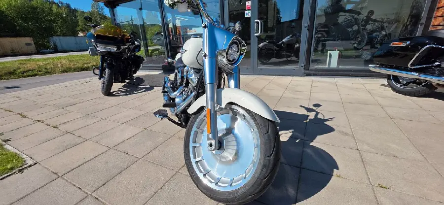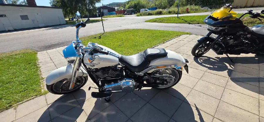 Harley-Davidson Fat Boy 114 (2018) som endast gått 1034 mil. Utrustad med bland annat luft & buller.