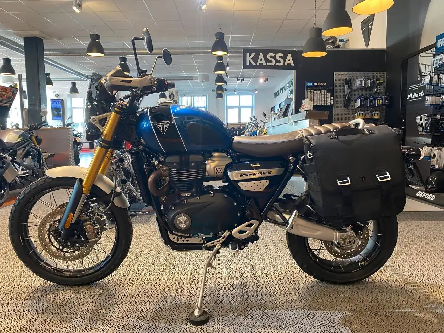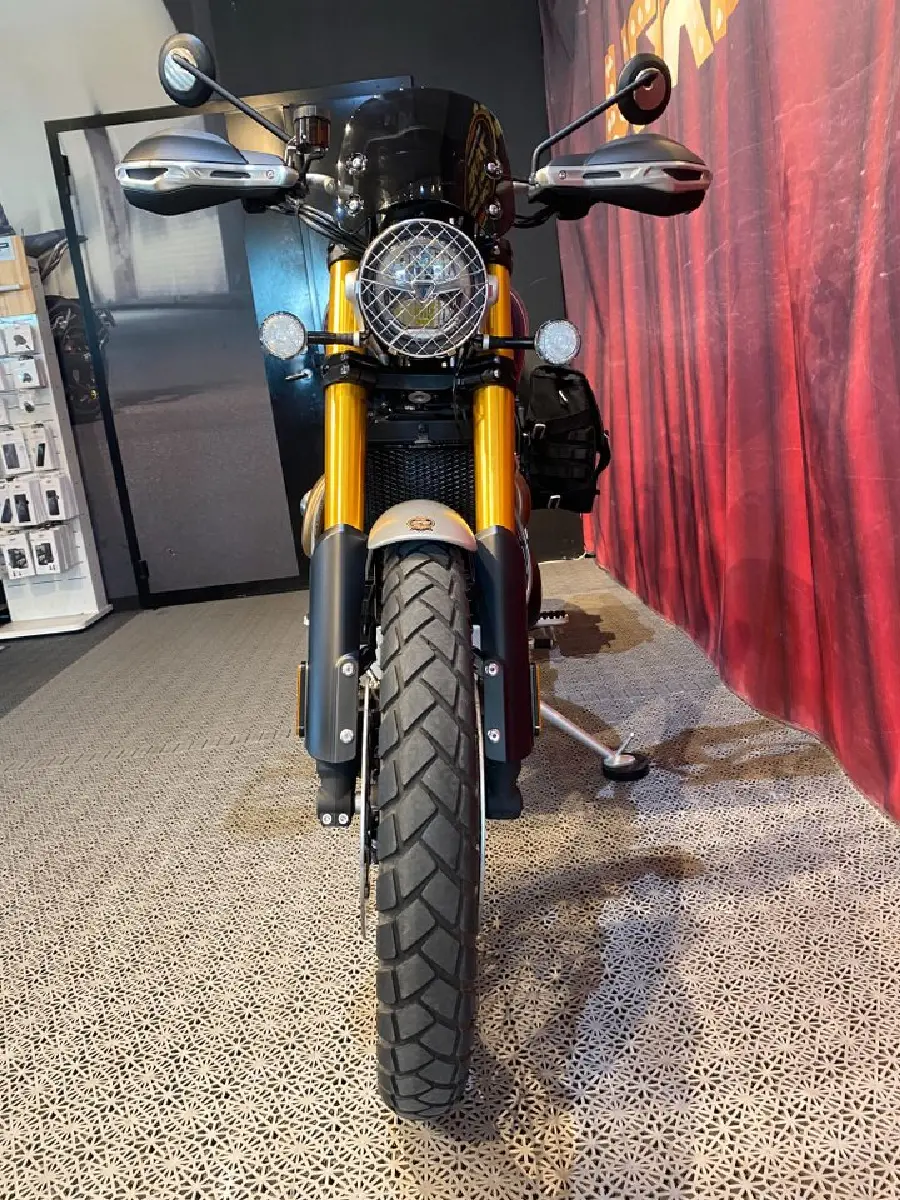 Lagertömningskampanj med från 2,95% ränta & fri vinterförvaring! 1200 XE är den mest Off Road inriktade versionen i familjen Scrambler. Detta exemplar har värmehandtag, mjuk sidoväska och skyddsgaller på strålkastaren extra monterat, standardutrustningen från fabrik är omfattande. Full historik. Endast drygt 400 mil på mätaren.