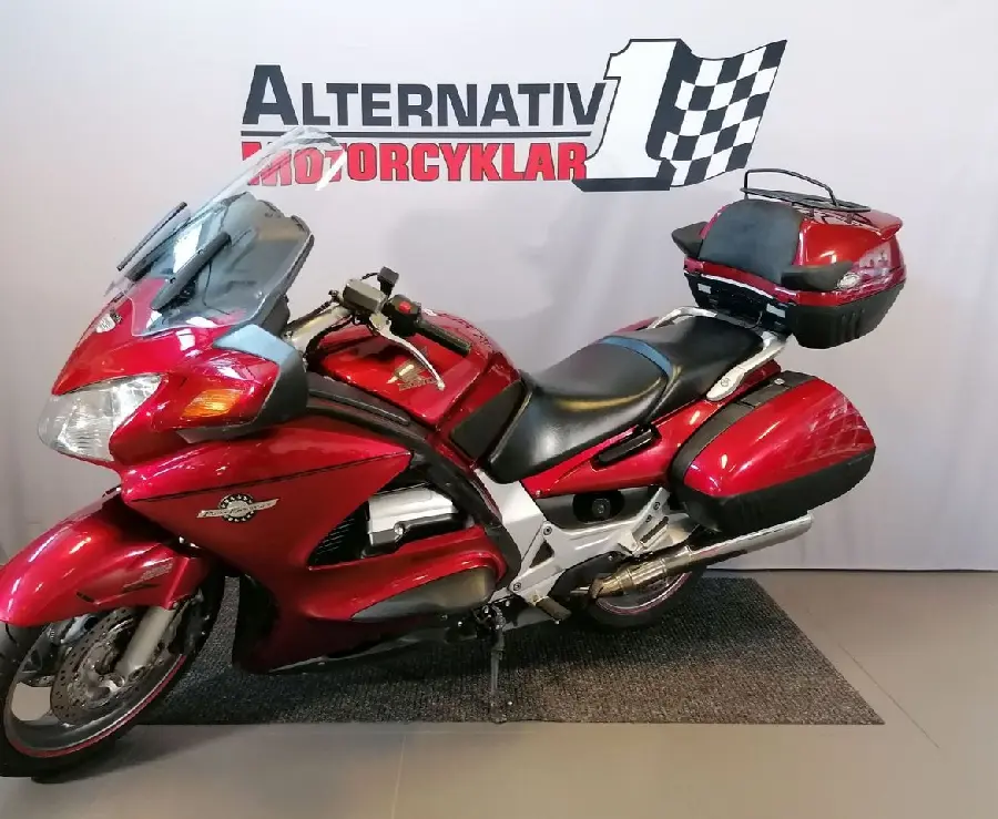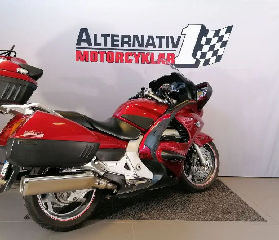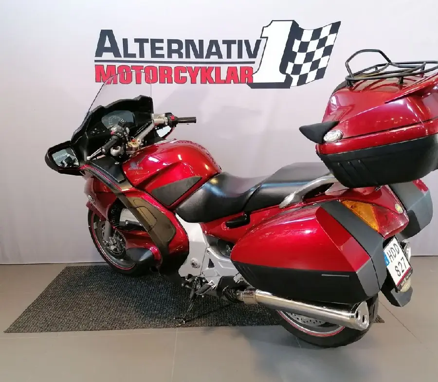 Honda ST1300 Pan European från 2015 med 9567 mil på mätaren. Jubileumsmodellen av Hondas populära touringmaskin - Pan European. Endast två brukare sedan ny. Utrustad med handtagsvärme. Sidoväskor. Toppbox med lasträcke och vinge. En rejäl maskin som klarar en europasväng utan problem - även med passagerare. Senast servad juli 2021 vid 9118 mil. Gaffel renoverad med nya packboxar och bytta belägg september 2023. Besiktigad till oktober 2025. #Honda #ST1300 #ST 1300 #PanEuropean #Pan European #Touring #Semesterhoj #Panna #Pannan #ST1300A #ST 1300 A #ST1300 #ST 1300 #HDD827 #HDD #827