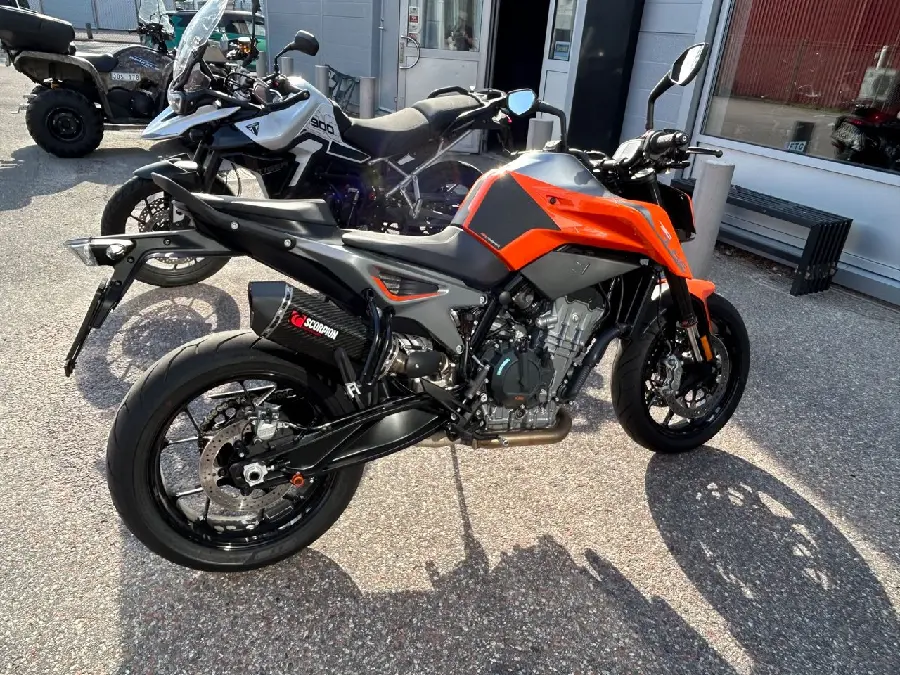 KTM Duke 790 ABS med Scorpion avgassystem. Original finns. Otroligt fint skick och endast 670mil. Track pack: Launch Control – för optimal start. Justerbar gasrespons (Street-Sport-Track). Justerbar anti-wheelie-funktion. 9-stegs justerbar traction control (MTC) Justerbar motorbroms (MSR – Motor Slip Regulation) Lingvalls motor AB.