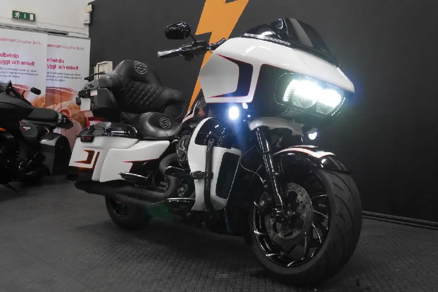Denna Road Glide Special är allt annat än standard. Utrustad med bredare framdäck för ökad väghållning och en muskulös look, kombineras funktion med ren attityd. Den unika customlacken drar blickarna till sig vart du än kör – personlig, kraftfull och 100 % Harley. En hoj för dig som vill sticka ut och köra med känsla