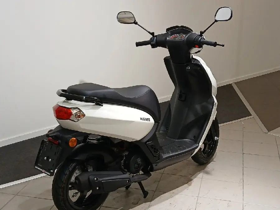 Peugeot Kisbee har mycket goda fo?rvaringsmo?jligheter och ett plant golv. Sadelhöjden är 770 mm och har en upprätt körställning som ger dig en stabil och säker körställning med mycket god överblick av dina medtrafikanter. Denna modell har en 6.3 liters tank, 12 tums aluminiumfälgar och en analog instrumentering.