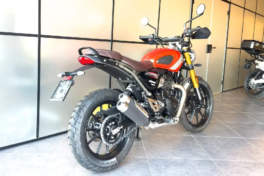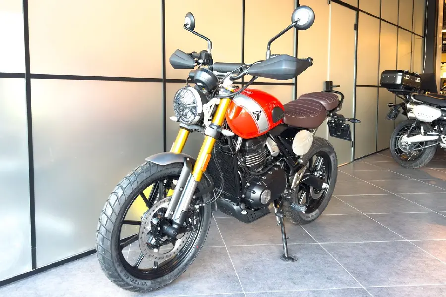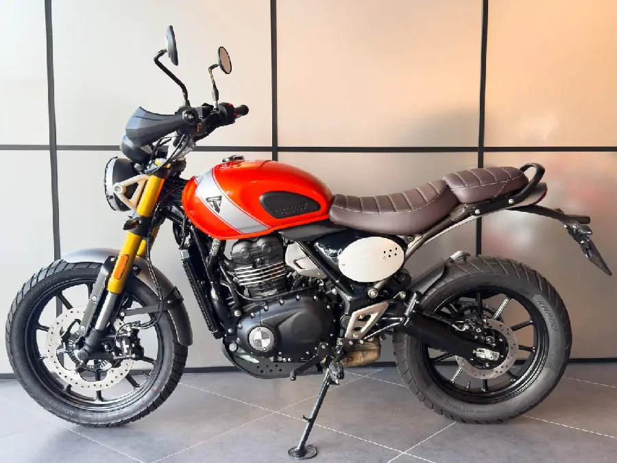 Triumph Scrambler 400 X! Här i nya Baja Orange / Aluminium-kulören!
