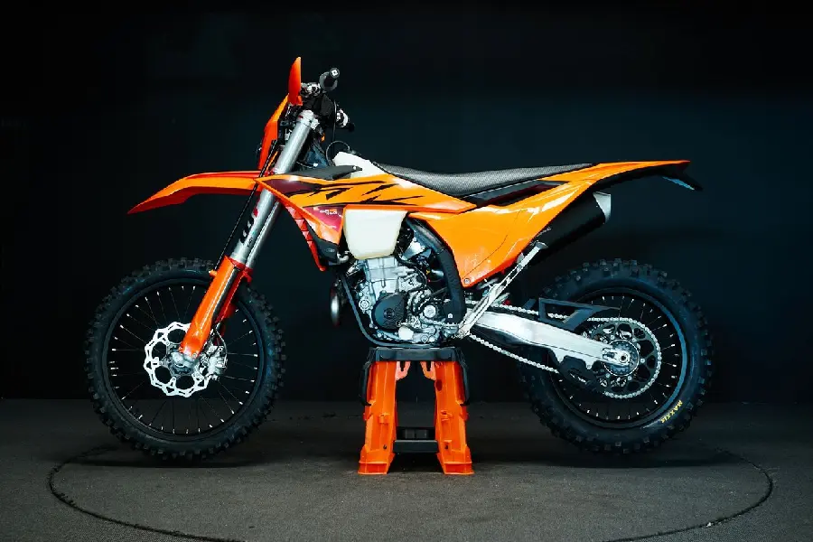 KTM 450 EXC-F rullar in i öppna klassen med en förnyad aptit på att tänja gränserna. Med ett klassledande chassi, tävlingsbeprövade kåpor och förarfokuserad ergonomi – för att inte tala om en av de mest framgångsrika 450 cc-motorerna i klassen – är KTM 450 EXC-F redo att kasta sig iväg från startlinjen med prispallen tydligt i sikte.