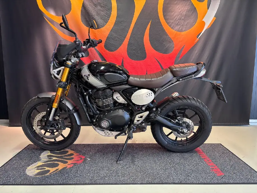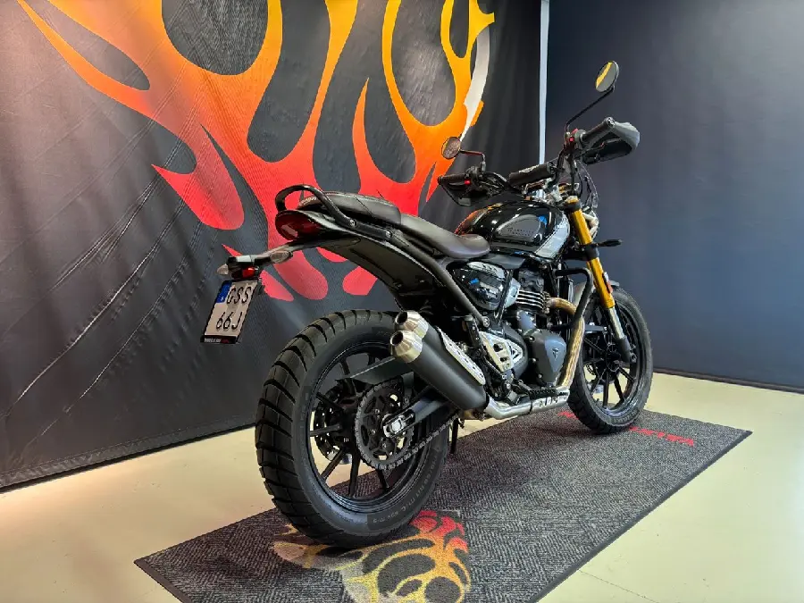 En fin, smidig och lättkörd Triumph med snyggt Scrambler utseende. Det är en hoj som är utmärkt att pendla med eftersom du har en bra upprätt körställning.
