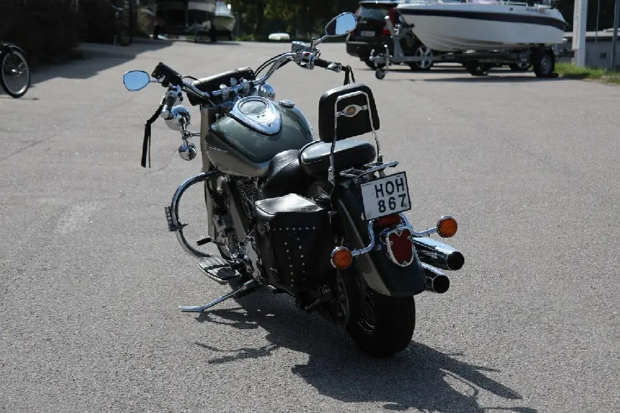 Här är ett svensksålt välvårdat och fint ex med endast två brukare. Utrustad med Vance & Hines Longshot-pipor sidoväska och verktygsväska i skinn sissybar pakethållare motorbåge med highwaypegs och dubbelljus.